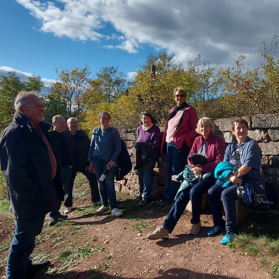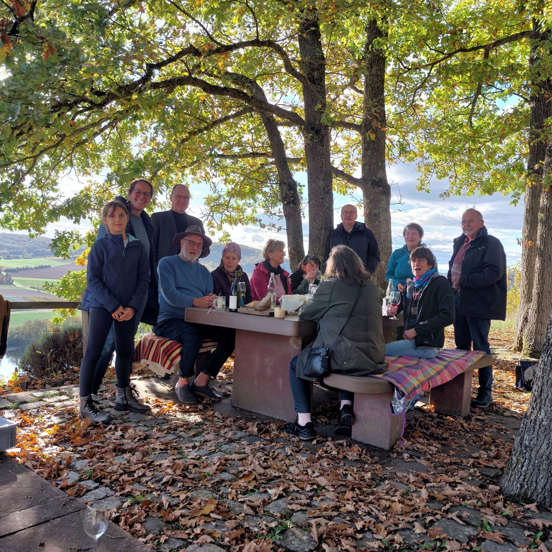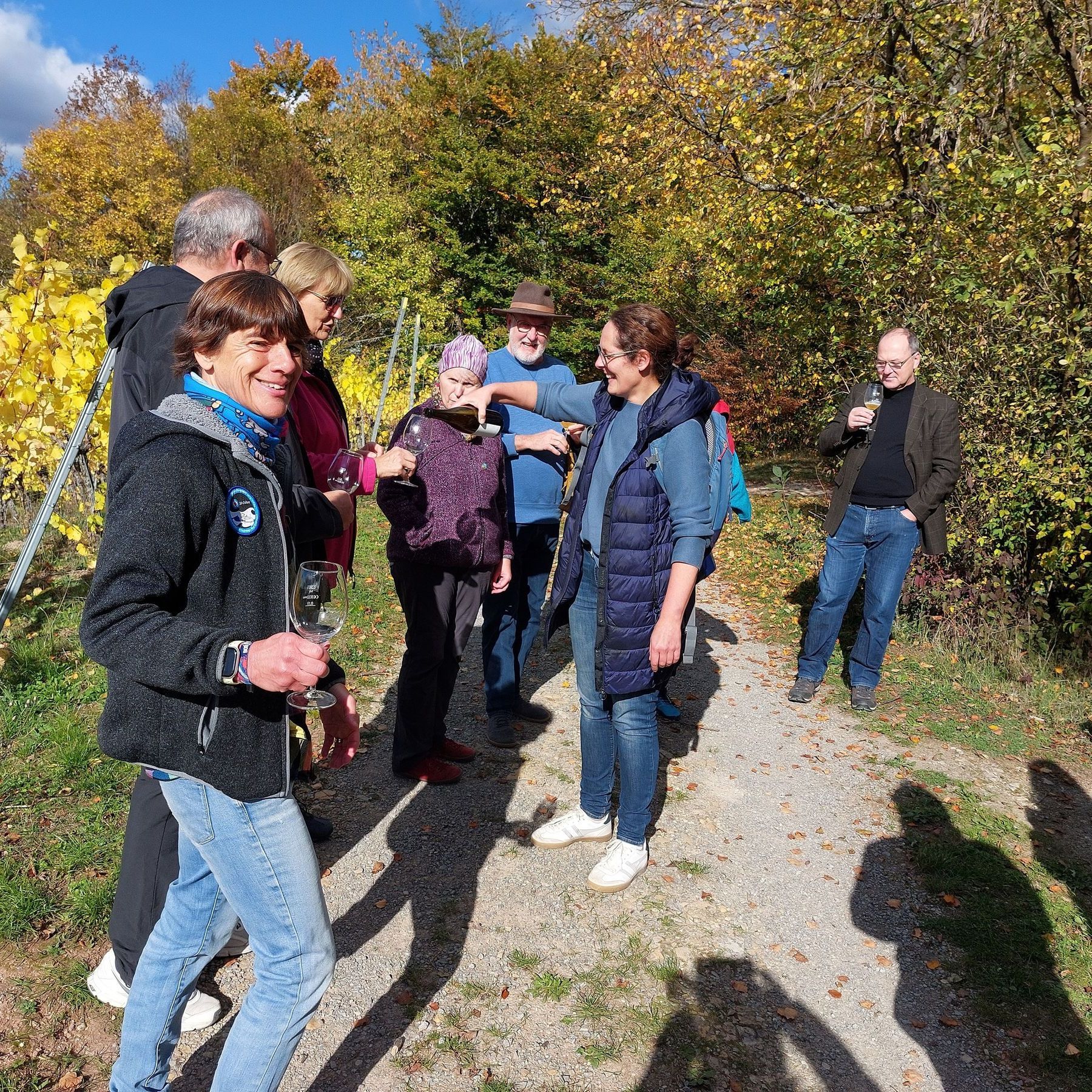 Mit strahlendem Sonnenschein wurde die Exkursion der Ortsgruppe Karlstadt in die Weinberge in Gambach belohnt. Eingeladen hatte Katja Vetter, Mitglied im BUND Naturschutz. Gemeinsam mit ihrem Mann Stefan Vetter, einem gelernten Winzer, betreibt sie seit etwa 10 Jahren ein Weingut in Gambach. Die Weine werden nicht nur alle alle biologisch angebaut, sondern auch ohne zugesetzte Hefen hergestellt. Dies mithilfe der sogenannten Spontanvergärung. Bei dem Spaziergang durften sich die Teilnehmenden vom Quittensecco bis zu verschiedenen Weinen selbst von dem besonderen unverfälschten Geschmack ihrer Weine überzeugen. Die Arbeit in den Weinbergen bedeutet viel Handarbeit, so Katja Vetter. Die Hänge sind steil und es ist ihnen noch dazu wichtig die Böden durch schwere Maschinen nicht zu verdichten. Eine kleine Brotzeit an der Weinbergskapelle mit leckeren selbstgemachten Brotaufstrichen war der tolle Abschluss dieser rundum gelungen Veranstaltung. Die Exkursion hat gezeigt mit wieviel Herzblut für den Wein und die Natur Familie Vetter im Weinberg arbeitet.