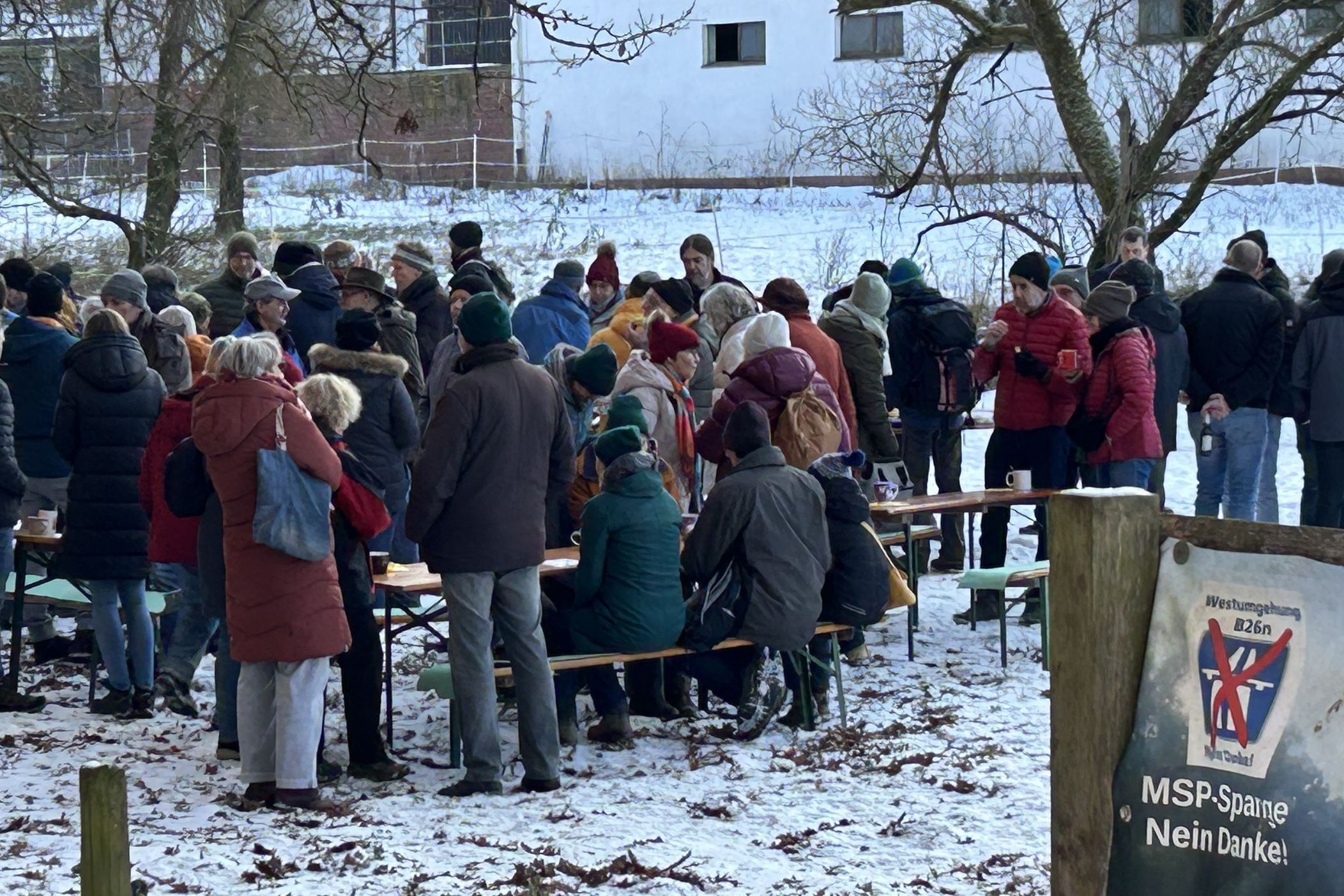 Neben den dramatischen ökologischen Folgen wurden am Zielpunkt, der Wiese unterhalb des Buchenhofes, auch die massiven finanziellen Bedenken von Frau Dr. Stahl thematisiert: