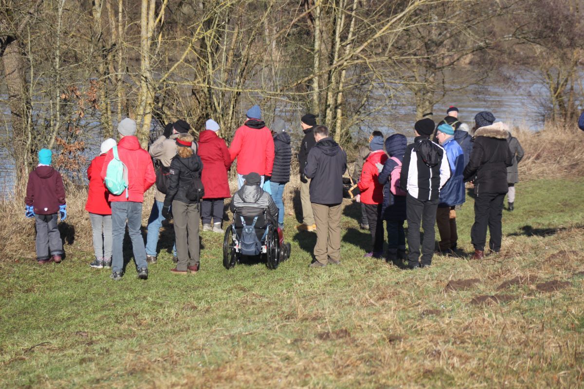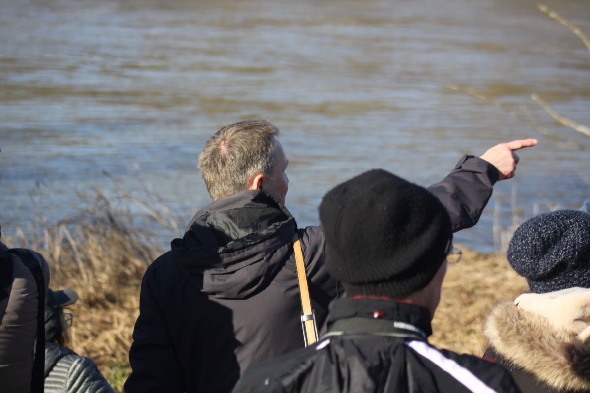 Entlang des Mains nahe der alten Mainbrücke war die Gruppe mit dem Vogelexperten Dr. Stephan Kneitz unterwegs und entdeckte oder hörte eine Reihe von Vögeln. Darunter fanden sich Mittelmeermöwen, ein Pärchen Lachmöwen, einige Kormorane, ein Distelfink, Rabenkrähen bei der Futtersuche, ein balzender Mittelspecht, eine sehr laute Nilgans, einige Blaumeisen, Stockenten und zur großen Freude aller sogar ein seltener Eisvogel.