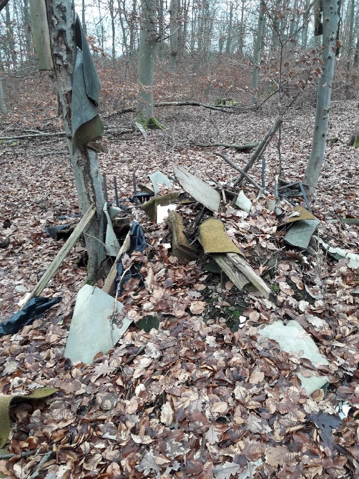 Neben Grüngut ist auch Bauschutt ein immer weiter zunehmendes Problem, gerade in Waldrand-Gebieten. Auch hier hat die Covid-19 Pandemie ihren Teil dazu beigetragen. Der ausgelöste Bau-Boom, der seit Mitte 2020 um sich greift, führt zu einer nie dagewesenen Menge an illegal abgelagertem Bauschutt. Da man hier bereits von vorneherein eine deutlich negative Absicht unterstellen kann, sind die Inhalte der Schilder bei dieser Serie im Allgemeinen etwas deutlicher in ihrer Aussage.