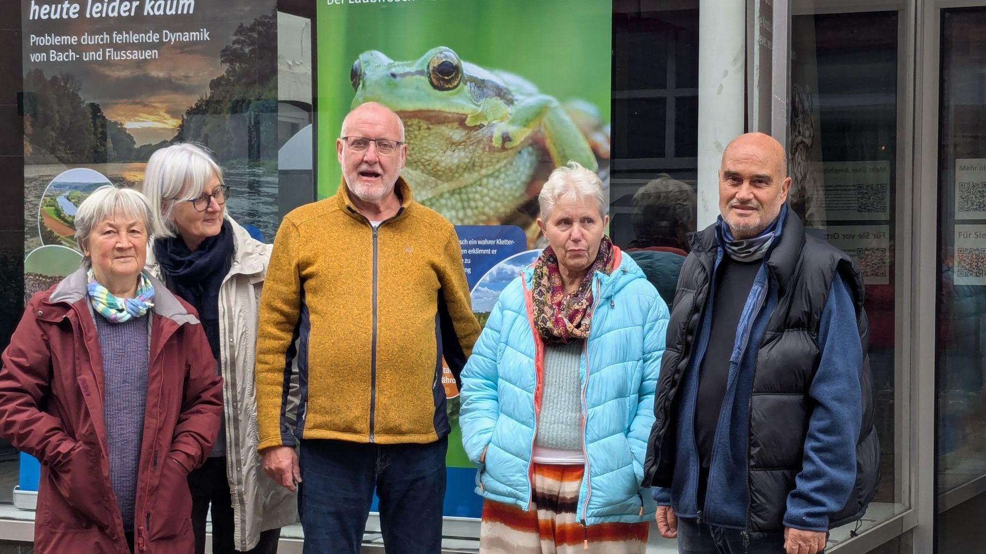 Gemeinsam mit Herrn Ludwig vom früheren gleichnamigen Babyfachmarkt freut sich der BUND Naturschutz Main-Spessart zusammen mit der Ortsgruppe Marktheidenfeld über die Eröffnung der Amphibienausstellung in den Schaufenstern des derzeit leerstehenden Geschäftes. Die Ausstellung wird voraussichtlich bis Ende November zu sehen sein.